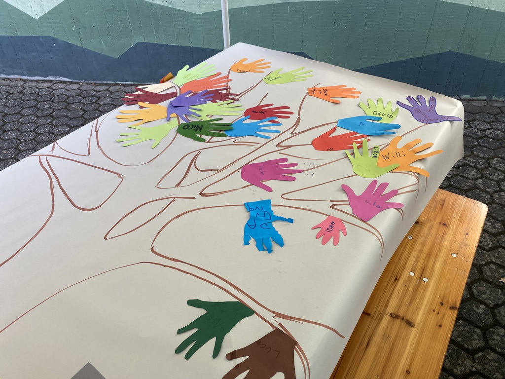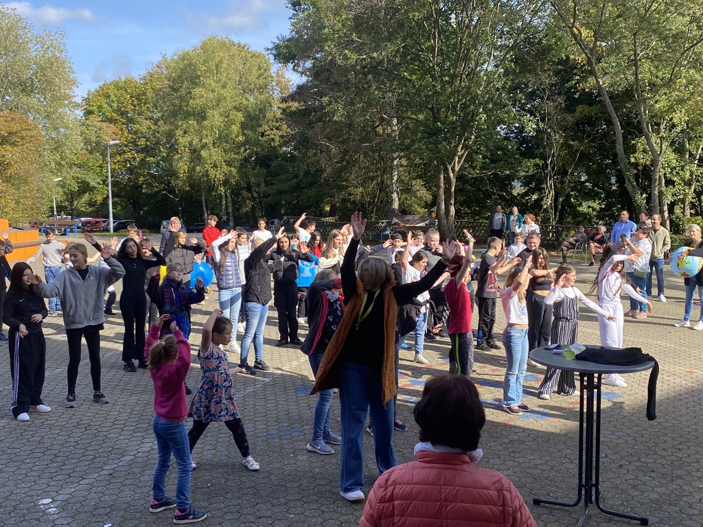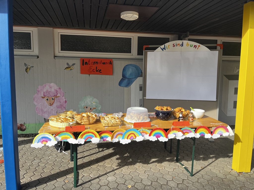 Am Freitag, den 06.10.23, fand unser Schulfest unter dem Motto „Wir sind bunt“ statt! Alle Klassen haben sich auf unterschiedliche Weise, passend zum Motto, an den Projekttagen eingebracht. So sind Fahnen, Länderplakate, Verköstigungen, Schmuck, Musikstücke und Bewegungsaktionen zu verschiedenen Nationen entstanden, die unseren herzlich willkommenen Besuchern vorgestellt wurden. Zudem konnten sich unsere Besucher ebenfalls in die Erstellung von Kunstwerken und Aktionen einbringen, um das Motto „Wir sind bunt“ im Rahmen der Schulgemeinschaft zu leben. Für alle Beteiligten war das Schulfest eine gelungene Festlichkeit, an die wir uns gerne erinnern.