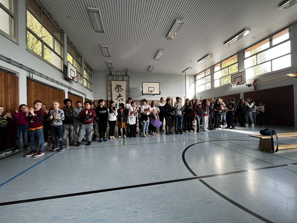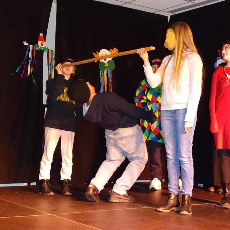 Am Donnerstag, den 08.02.2024, versammelten sich die Schüler*innen und Lehrer*innen zu Beginn der dritten Stunde in der Aula, um gemeinsam Karneval zu feiern! Die Schulgemeinschaft erwartete ein buntes Programm, welches sich aus Beiträgen der einzelnen Klassen zusammensetzte. Neben einem Limbo-Wettbewerb, einzelnen Showeinlagen und Tänzen fand zum Schluss noch ein klassenübergreifender Kostümwettbewerb statt, bei dem viele und exklusive Kostüme bewertet wurden. Kinder, für die das bunte Treiben bis dahin genug war, konnten sich im anschließend in den Ruheraum zurückziehen. Für alle Jecken ging die Feier mit karnevalistischer Musik weiter. Parallel hierzu wurden frische Crepes und hausgemachte Bowle angeboten – welch ein gelungenes Fest!
