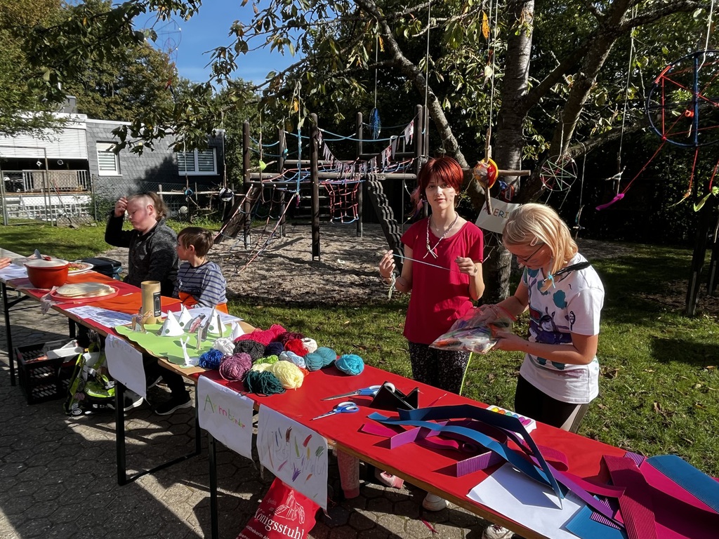 Leider spielte das Wetter nur begrenzt mit, aber nach dem Aufbau der verschiedenen Stationen auf dem Schulhof der Helene-Pagés-Schule ging es dann los: