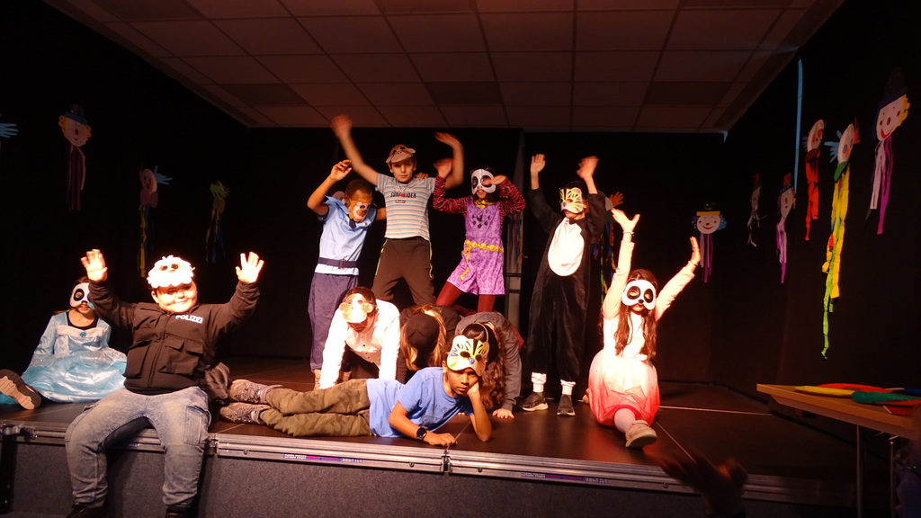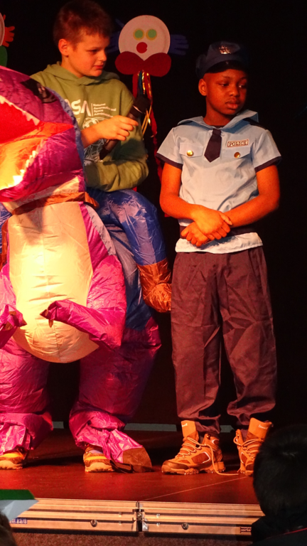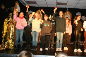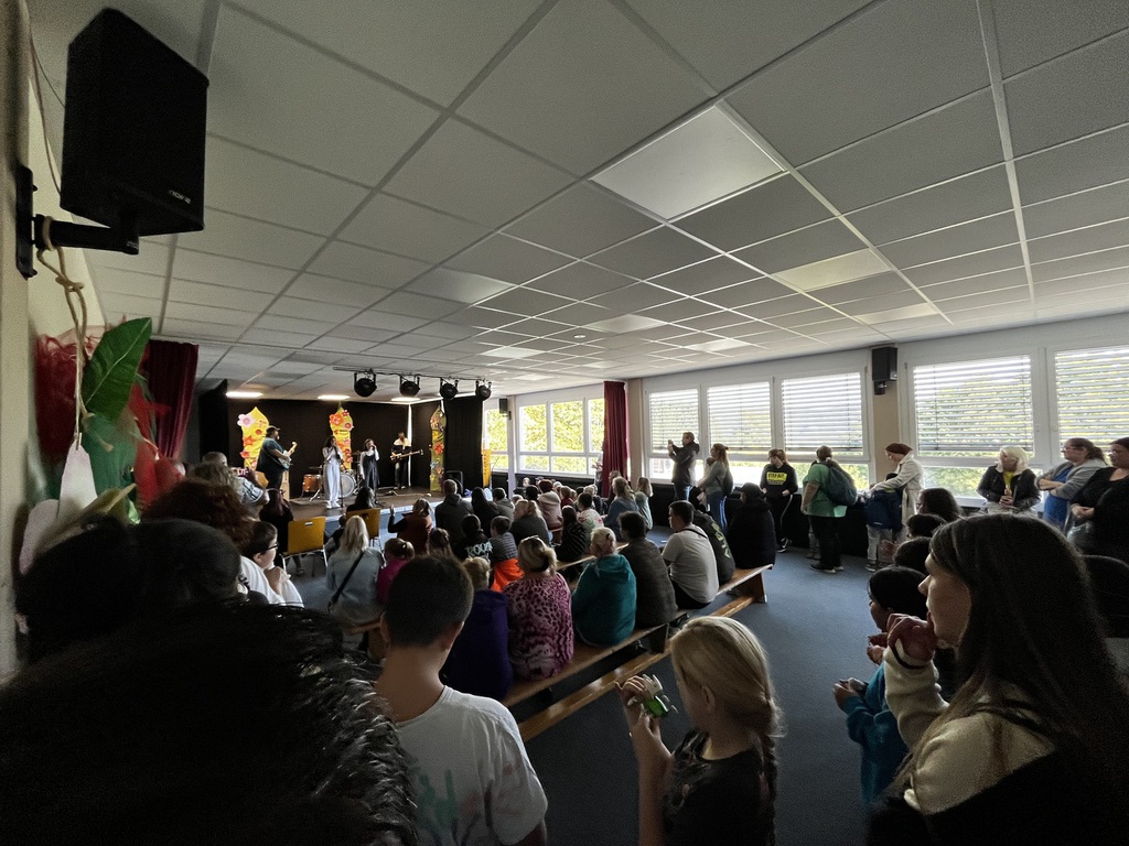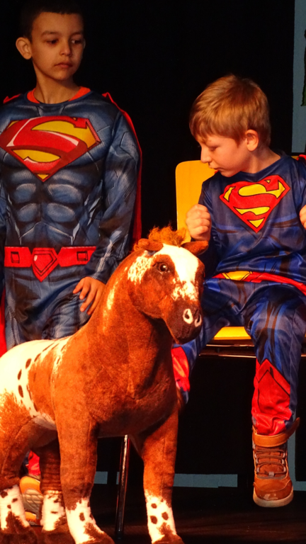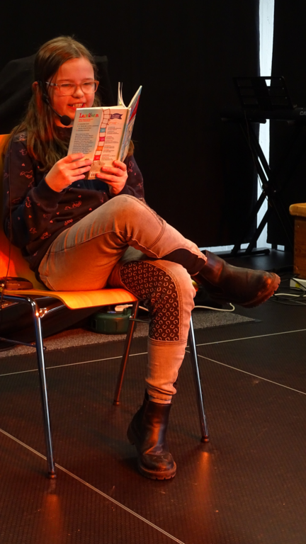 Rouha und Hannah (Klasse 7/8) lasen die Erzähler und Fin sorgte für die Technik während des Theaterstückes. Die Schauspieler wurden durch den lauten Applaus der Zuschauer belohnt und sind nun für ihr neues Theaterstück motiviert.