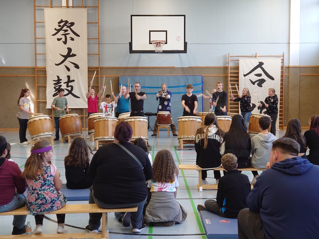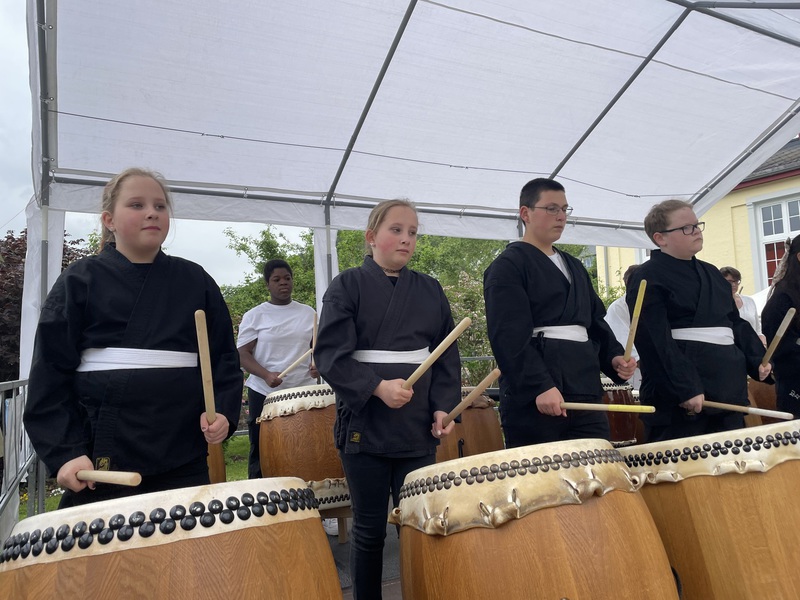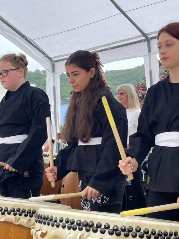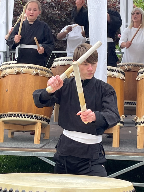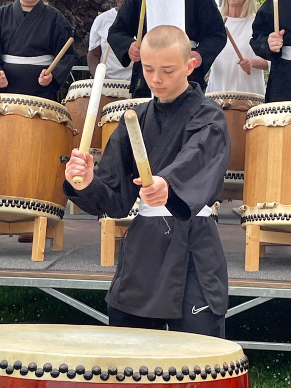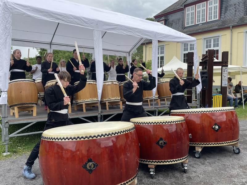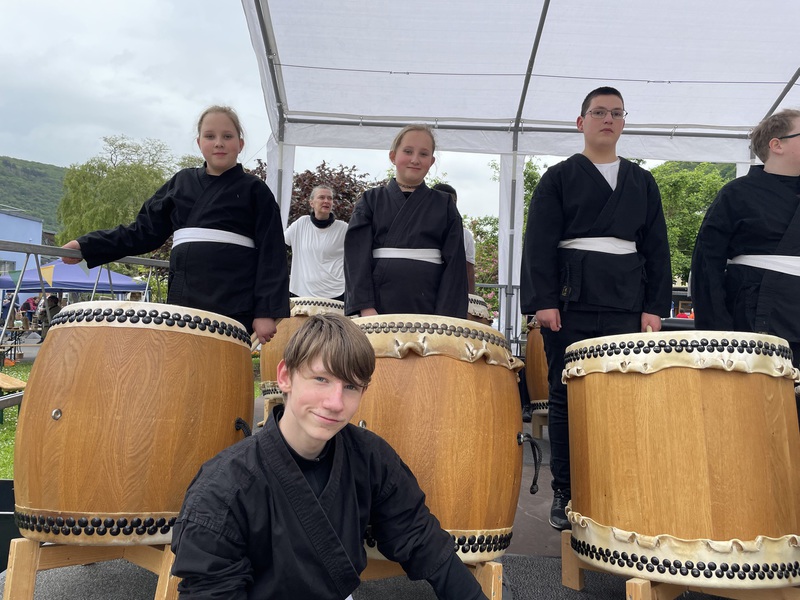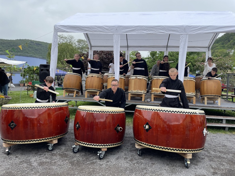 Am Samstag, 04.05.2024, haben wir uns um 10.30 Uhr in Boppard bei der Stiftung Bethesda getroffen, um mit unseren Taikotrommeln zwei Stücke zu spielen. Nach dem ersten Stück hat Herr Honecker ein paar Worte an das Publikum gerichtet. Nachdem wir unsere zwei Stücke gespielt hatten, hat Herr Honecker uns verabschiedet und die Erwachsenen haben noch ein letztes Stück gespielt. Davor mussten sie aber noch die Trommeln umbauen, weil es leicht geregnet hat. Das Publikum hat auch gut reagiert mit großem Applaus und Zugabe. Mit unseren Stücken wurde das Fest eröffnet und es war ein erfolgreicher und schöner Tag. Am Ende kam auch die Sonne zum Vorschein und alle hatten große Freude. Beim Frühlingsfest gab es auch Verkaufsstände, Unterhaltung, Ausstellung und eine Hüpfburg. Außerdem waren auch viele Eltern und Lehrer/innen da.