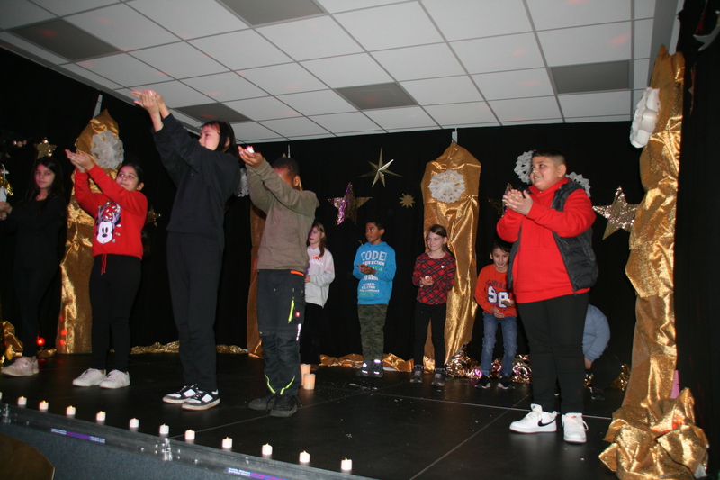 Die Klasse 1/2 überzeugte das Publikum durch die bezaubernde Vorstellung des Liedes der Weihnachtsbäckerei, bei der Eier zu Fall kamen und ein Teig angerührt sowie probiert wurde. Besinnlich wurde es durch den wunderschönen Lichtertanz der Klasse 3/4, die es schaffte, den feierlichen Rahmen zu betonen. Anschließend trug die Klasse 4/5 sehr überzeugend, ausdrucksstark und mit großartigen Kostümen das Theaterstück „Wie der Weihnachtsstern nach Bethlehem kam“ vor. Nach dem gemeinsamen Lied „Stern über Bethlehem“ trug die Klasse 9 eine spannende Lesespurgeschichte von der Weihnachtsgeschichte vor, bei der alle am Smartboard begeistert mitraten konnten. Die Klasse 5/6 überzeugte das Publikum durch ihren mitreißenden Vortrag des Gedichtes der „Bratapfel“, bei dem Äpfel zischten, brutzelten und die Schüler tanzten.