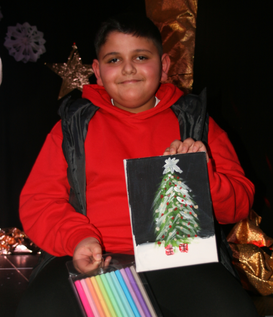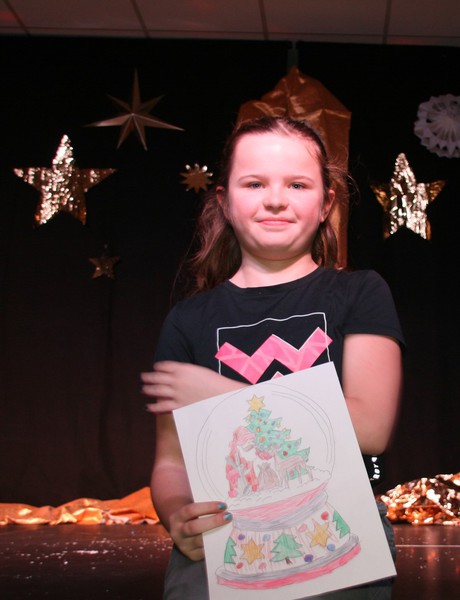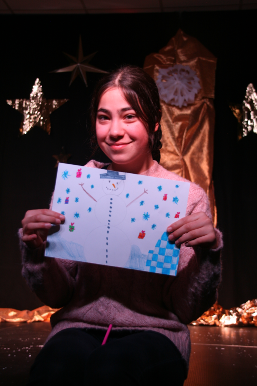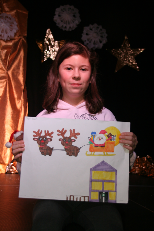 Vor dem gemeinsamen Lied „Oh Tannenbaum“ wurden noch die Sieger des weihnachtlichen Malwettbewerbs bekannt gegeben und erhielten großen Applaus. Frau Henrich bedankte sich zum Abschluss der Feier bei allen für die wunderschöne, abwechslungsreiche, gelungene Weihnachtsfeier und wünschte allen schöne Ferien. Beim Verlassen der durch Klasse 9 wunderschön geschmückten Aula verteilte die Klasse 5/6 allen selbst gebackene Plätzchen.