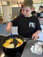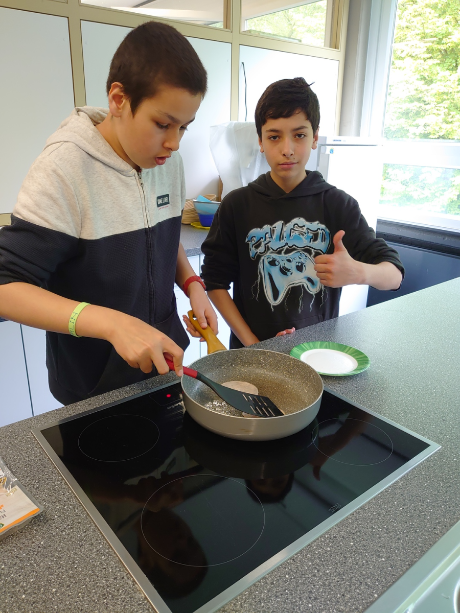 Am Dienstag, den 12.12.2023, fand ein Teil der der Adventswerkstatt von Klasse 5/6 statt. Hierbei stimmte sich die Klasse mit weihnachtlicher Musik ein und stellte verschiedene Sorten von Plätzchen her. Dabei lernten die Schüler*innen mit Freude, auf welch unterschiedliche Weise Teig verarbeitet werden kann. Die eine Gruppe stellte mit Spritzgebäck ihre Namen her, eine weitere buk Waffelplätzchen mit dem Waffeleisen und wieder eine andere stach mit Förmchen verschiedene Symbole aus. Zum Schluss wurden die Plätzchen noch individuell verziert; die Kinder hatten viel Spaß bei der Umsetzung ihrer Ideen.