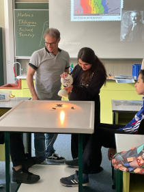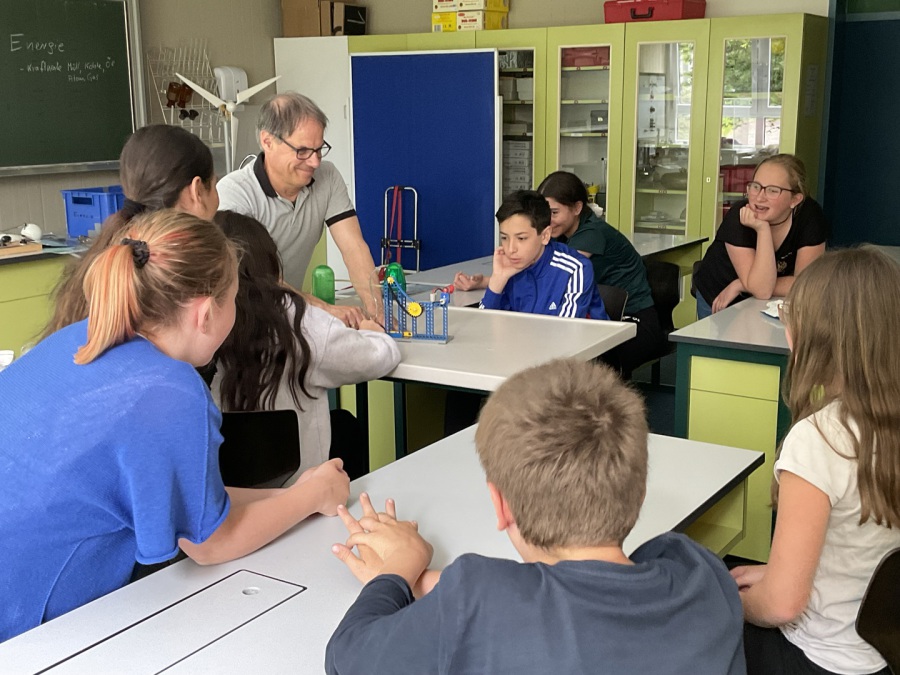 Mit vielen anschaulichen Experimenten erweckte Markus Phlippen die Neugier der Schüler und führte sie in die Welt der sauberen Energieformen ein. Sie lernten, wie Solarzellen Licht in Bewegung umwandeln, indem sie kleine Käfer durch Glühbirnen in Bewegung zum Krabbeln brachten, und erlebten die Kraft des Windes durch kleine Windturbinen-Modelle, die sichtbar Licht erzeugten. Auch die Umwandlung von Wasserenergie wurde durch Miniatur-Wasserkraftwerke verdeutlicht.