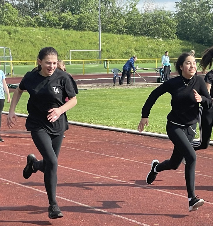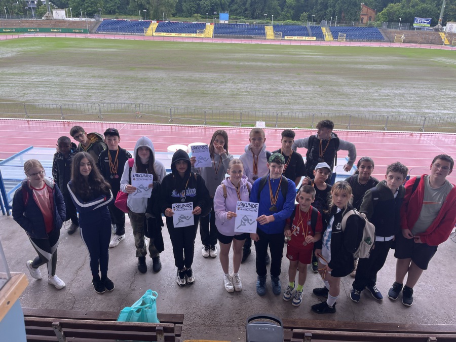 In diesem Jahr fand die Regionalmeisterschaft Leichtathletik in Koblenz statt. Die jeweils drei besten Schülerinnen und die drei besten Schüler im Sport in jeweils vier verschiedenen Altersklassen wurden ausgewählt, um an der Meisterschaft teilzunehmen. Wir trafen Sportler*innen der Diesterwegschule und der Hans-Zulliger-Schule aus Koblenz, die Hunsrückschule aus Simmern und die Freiherr-vom-Stein-Schule aus Lahnstein. Alle Teilnehmenden gaben ihr Bestes, um in vier Disziplinen das Beste für ihre Schule rauszuholen. Mit einem tollen zweiten Platz in der Gesamtwertung und vielen Gold-, Silber- und Bronzemedaillien können die Schülerinnen und Schüler unserer Schule sehr stolz sein. Trotz des regnerischen Wetters, verlief auch dieses sportliche Ereignis sehr harmonisch und es war für alle ein rundum schöner Tag.