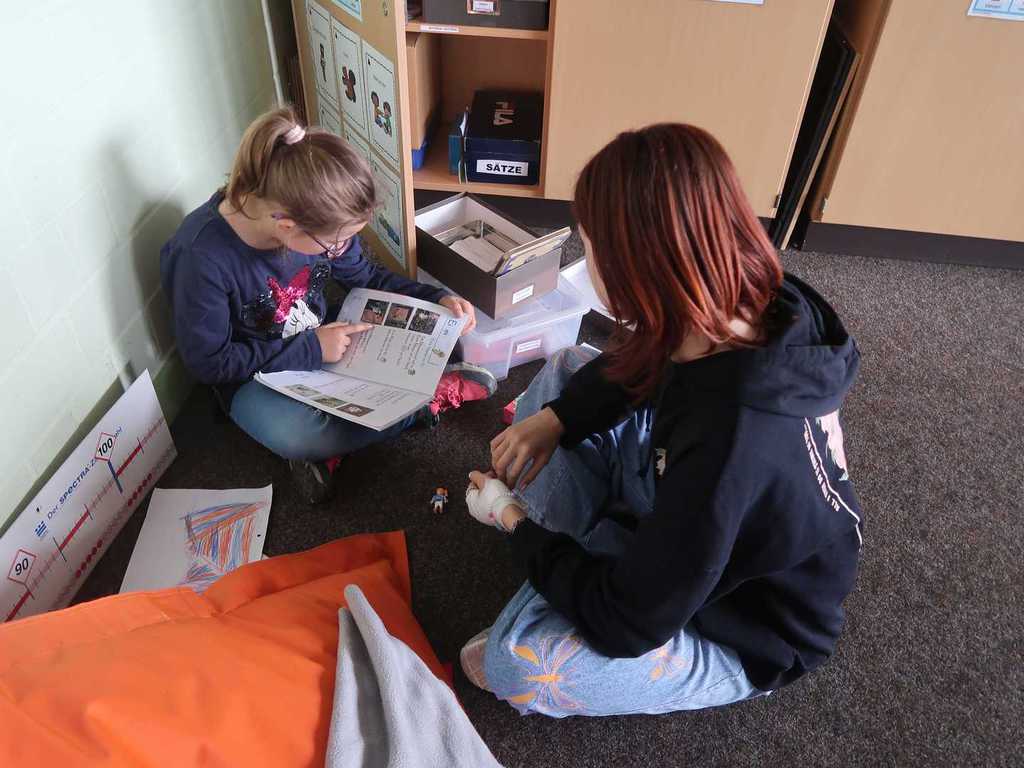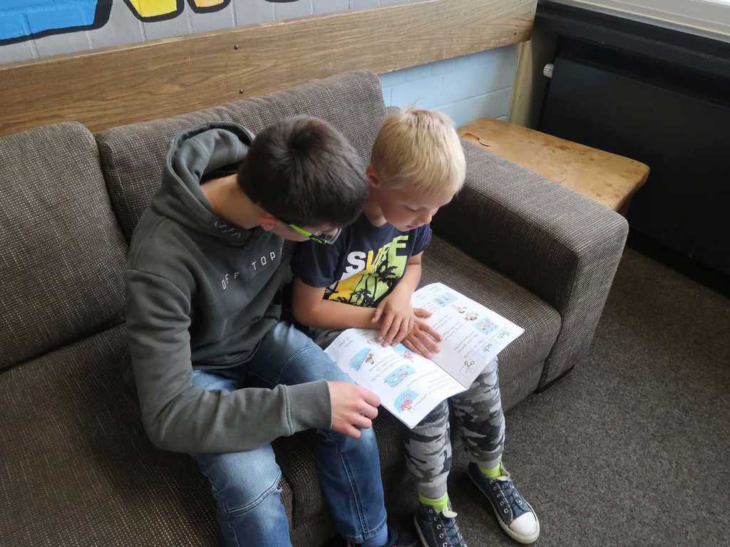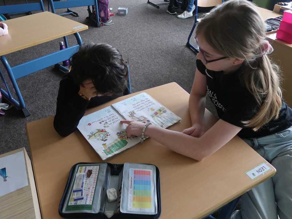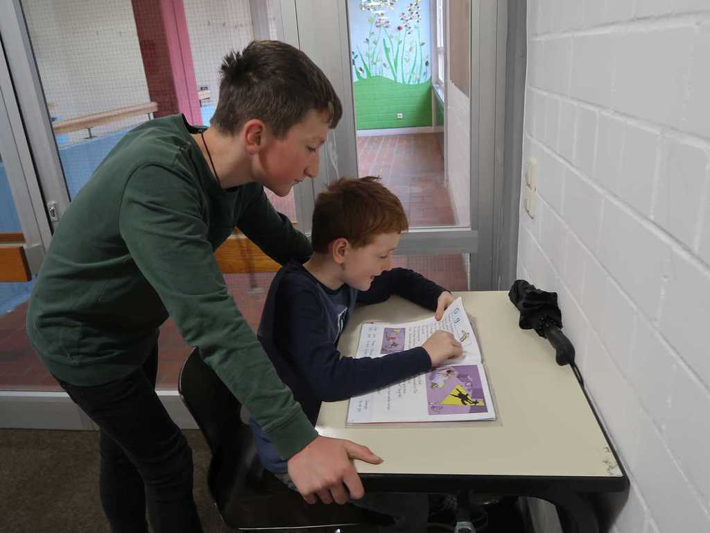 Seit Beginn des Schuljahres lesen immer freitags die Schüler*innen der Klasse 1/2 der Klasse 6/7 vor. Den Jüngsten der Schule gefällt es sehr gut den Großen zu zeigen, was sie schon alles können. Die Sechst- und Siebtklässler finden die Fortschritte der Kleinen toll und unterstützen Sie gerne. Unter den SchülerInnen haben sich schon richtige Freundschaften gebildet.