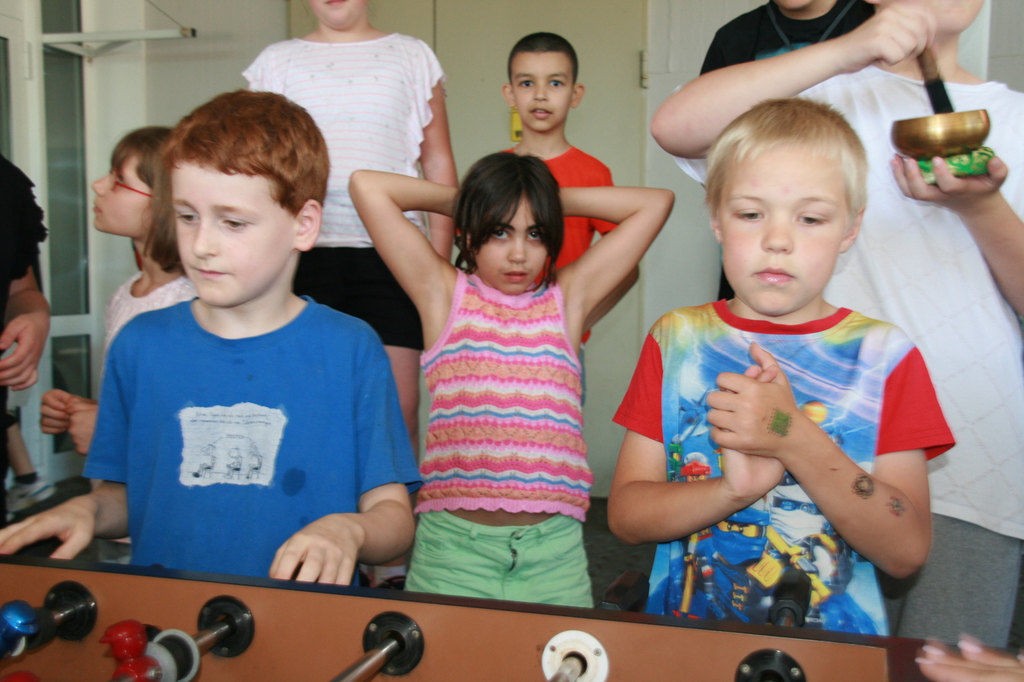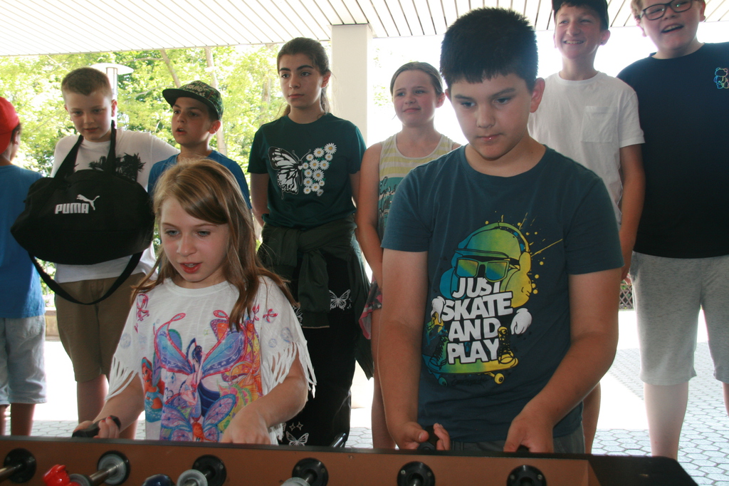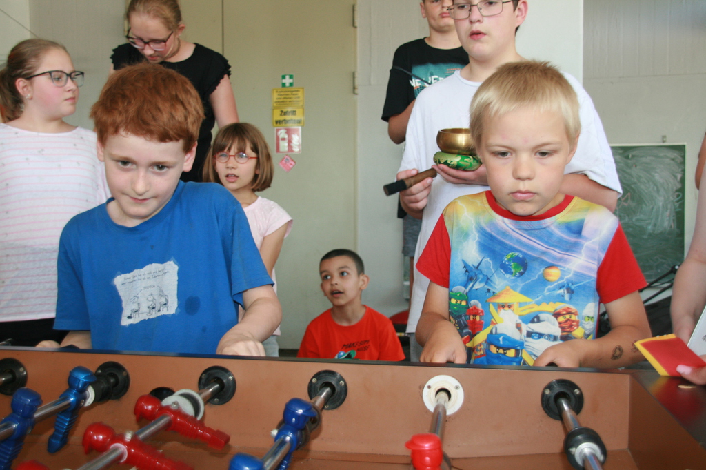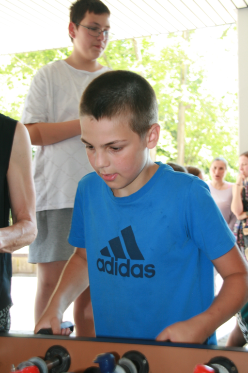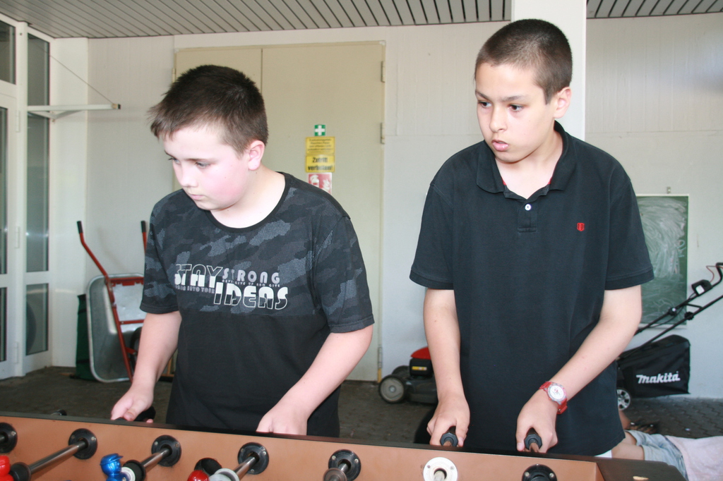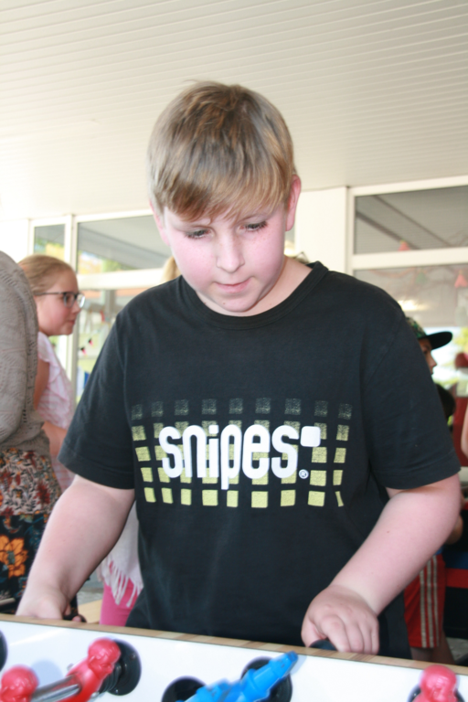 Im Rahmen der Fußball Europameisterschaft in Deutschland fand am 26.06.2024 bei bestem Wetter das Tisch-Kickerturnier der Helene-Pagés-Schule statt. Mit der Unterstützung der SV, die dies mitorganinsierte, trafen geloste Paare der Unterstufe, wie auch geloste Paare der Mittel- und Oberstufe, untereinander an. Zur Freude einiger SchülerInnen beteiligten sich auch einige Lehrerinnen am Turnier. Bei ausgelassener Stimmung konnten Fin und Niklas das Turnier "der Großen" für sich gewinnen, während bei "den Kleineren" Raza und Jaden alles abräumten.