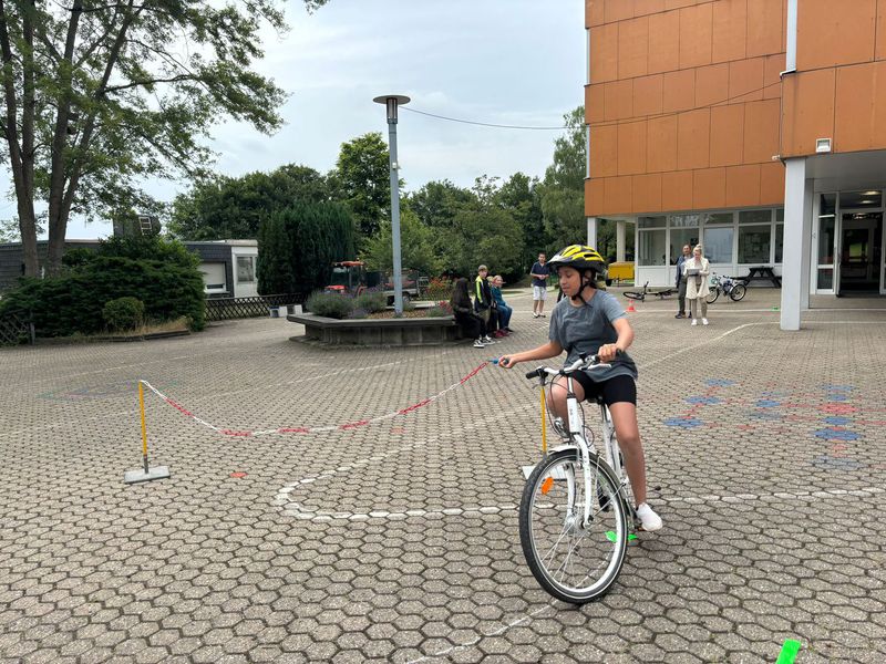 Über 20 Schüler:innen aus den Klassenstufen 4-8 nahmen an dem Durchfahren des Geschicklichkeits-Parcours mit Freude und Erfolg teil. Auch ein Schüler der Klassenstufe 9, welcher tatkräftig beim Auf- und Abbau half, durfte mitfahren und zudem probierte sich eine Lehrkraft an den Herausforderungen. Es gab einmal den ersten Platz, dreimal den zweiten sowie dreimal den dritten Platz. Die Gewinner erhielten einen kleinen Preis, alle Teilnehmer:innen bekamen außerdem eine Teilnahme-Urkunde sowie ein Lineal des ADAC als kleine Belohnung für ihre Teilnahme.