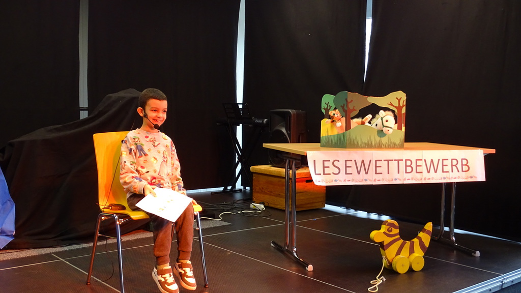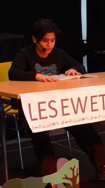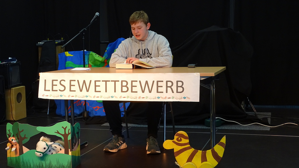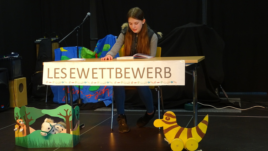 Schon seit Januar bereiteten sich die einzelnen Klassen auf den jährlichen Lesewettbewerb der Schule vor. Die Spannung wuchs, als es zu den einzelnen Wettbewerben in den Klassen ging. Jede/r Schüler/in von Klasse 1 bis 9 hatte dafür einen speziellen Text geübt. In den Klassen wurden dafür die Klassensieger ermittelt. Die Klassensieger/innen lasen dann gegeneinander in der Unter-, Mittel- und Oberstufe. Sehr spannend war es dann in der Entscheidung der Mittelstufe, die auch einen unbekannten Text der Schulgemeinschaft vorlesen musste. In der Oberstufenentscheidung wurde dann nur der unbekannte Text vorgetragen und anschließend der/die Schulsieger/in ermittelt. Das sind die Gewinner/innen: