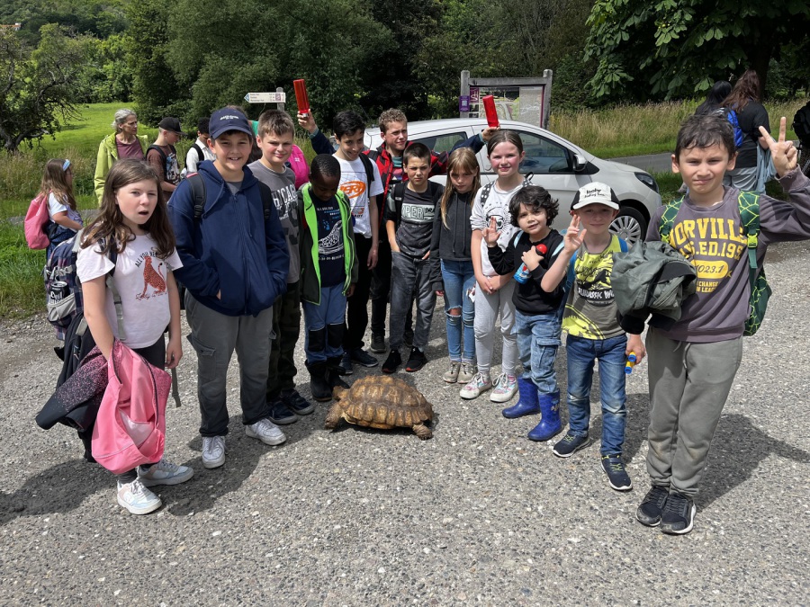 Die ganze Schulgemeinschaft machte sich am 04.07.24 bei Nieselregen auf den Weg zum Kurpark nach Bad Salzig auf. Im Kurpark angekommen wurde erst einmal gefrühstückt und dann verteilten sich die SchülerInnen und spielten Fußball, Mikado, mit den Hunden oder quatschten miteinander. Auf dem Rückweg kam dann noch die Sonne raus und es gab eine besondere Überraschung: Am Eisenbolzparkplatz konnten die Kinder Schildkröten bestaunen, die ein freundlicher Herr den Kindern erklärte. Vielen Dank für dieses besondere Erlebnis!